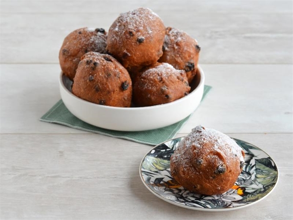 Een heerlijk luchtig bolletje, gevuld met krenten, rozijnen en stukjes appel.